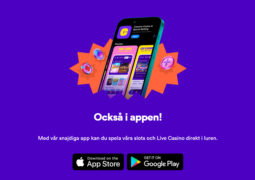 En stor majoritet av dagens spelare föredrar att spela i mobilen, och hÀr levererar Casumo en upplevelse i absolut vÀrldsklass. Deras dedikerade app, som finns tillgÀnglig för bÄde iOS och Android, Àr blixtsnabb, intuitiv och erbjuder full funktionalitet. Du kan logga in sÀkert med FaceID eller TouchID och njuta av hela spelutbudet utan lagg.