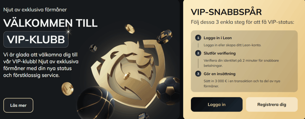 Leon Casino, som till exempel Twin Casino, erkÀnner och belönar sina mest trogna spelare genom ett sofistikerat och givande VIP-program. Detta program Àr designat för att erbjuda en personligt anpassad spelupplevelse som belönar spelarnas engagemang och spelaktivitet pÄ plattformen. Genom att delta i VIP-programmet, dyker spelarna inte bara in i en vÀrld av exklusivitet utan fÄr Àven tillgÄng till en rad specialförmÄner som förbÀttrar deras spelupplevelse.